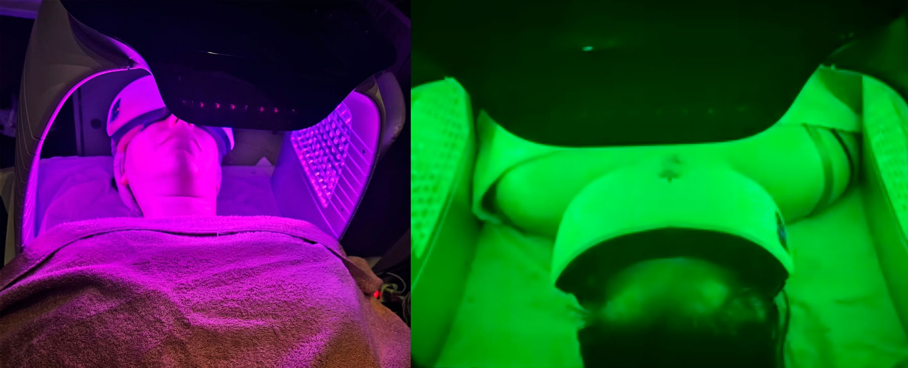 - Luz verde: regula la pigmentación y calma la piel sensible o con rojeces.